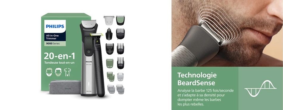 Ses lames en acier auto-affûtées restent performantes jour après jour, tandis que la technologie BeardSense analyse la densité de votre barbe et adapte la puissance pour une coupe impeccable, même sur les poils les plus denses.