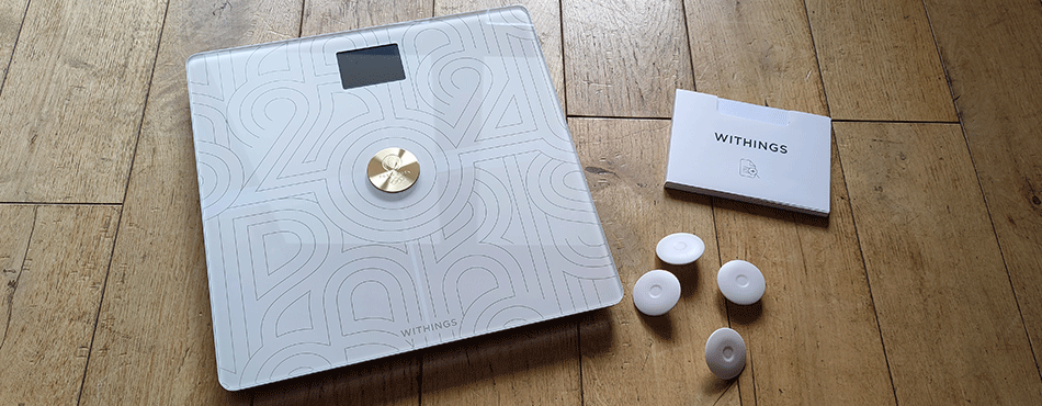 Vous trouverez dans la boite la balance connectée, 4 pieds destinés à l’utilisation sur moquette, 4 piles AAA, un guide d’utilisation et un guide de démarrage rapide. Withings n’hésite d’ailleurs pas à mettre en avant la durabilité de ses produits, précisant que 50% des utilisateurs de ses balances connectées s’en servent encore après 7 ans d’utilisation. Notons que la marque annonce une autonomie de 15 mois pour sa balance connectée.