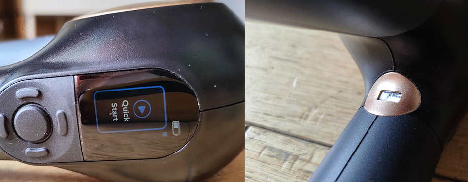 On trouve aussi dans la boite une pochette de transport, un câble de charge de type USB-C, mais pas le bloc chargeur correspondant. On pourra bien entendu utiliser celui de son smartphone ou de sa tablette tactile.