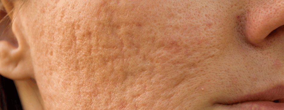 L'acné peut laisser des cicatrices sur la peau. Lorsqu'un bouton disparaît (volontairement ou non), il laisse une cavité plus ou moins grande qui est rebouchée par le collagène. Si le corps ne produit pas assez de cette substance, une cicatrice peut apparaître.