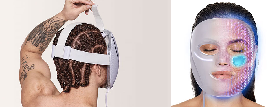 Parmi les soins du visage, on retrouve les masques à LED. Il s'agit d'un dispositif qui utilise des lumières LED de différentes couleurs pour stimuler certaines fonctions des cellules de la peau et traiter divers problèmes cutanés. Ces masques peuvent être utilisés pour lutter contre les taches d'acné, les éruptions cutanées, pour stimuler la production de collagène et améliorer le grain. L'objectif est de retrouver chez soi les bénéfices des soins professionnels.