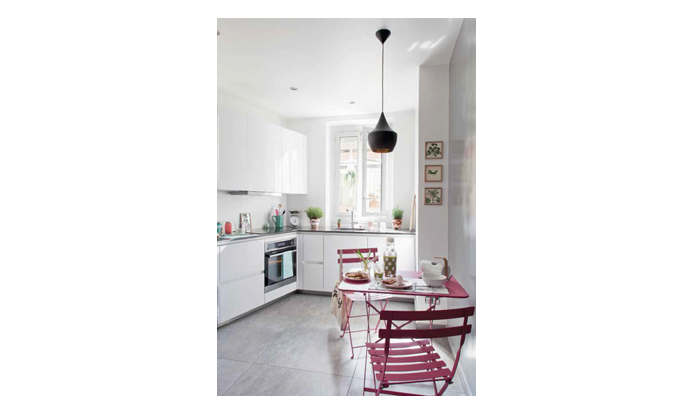 Pour Claire, la cuisine est une pièce à vivre à part entière : c’est là qu’elle exerce sa créativité culinaire, prend ses repas et passe aussi du bon temps, seule ou entre amis. Elle veut une cuisine fonctionnelle, modulable et conviviale.