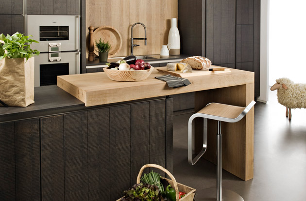 Le bar est sans conteste l'élément le plus utilisé pour délimiter l'espace cuisine. Il fait office de séparation tout en offrant un comptoir pour déjeuner sur le pouce ou boire un verre avant de passer à table.