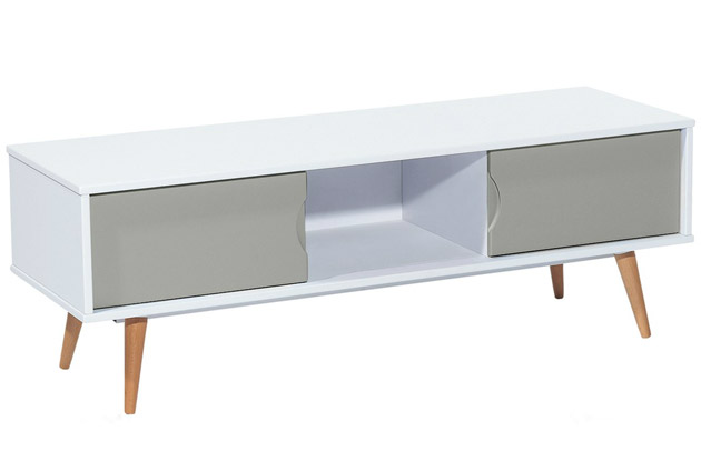 Le design des années 50 et 60 revient sur le devant de la scène. Les amateurs de déco ne pourront qu'apprécier ce meuble TV dont les lignes vintage ont été revisitées de manière réussie.