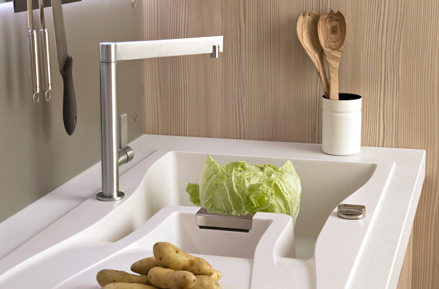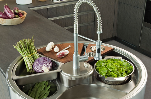 Insolite mais ultra-fonctionnel, ce meuble en inox fait du point d’eau le coeur de la cuisine. Doté de plusieurs bacs et accessoires, il permet de laver, préparer, découper, ranger... même à plusieurs autour de l’évier !