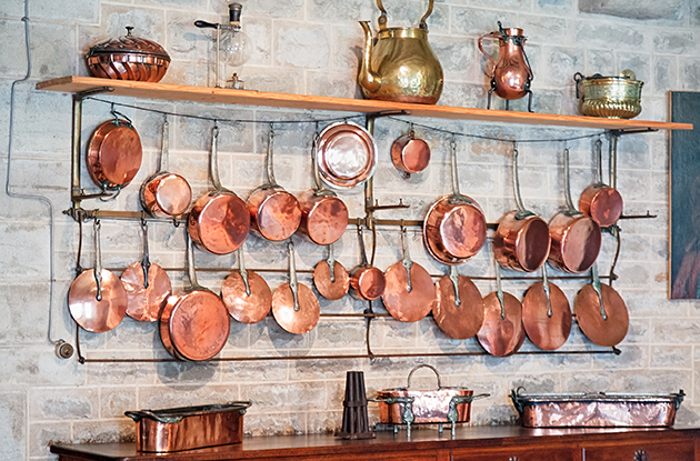 Les casseroles en fonte ou en cuivre font partie intégrante de la cuisine rustique à l'ancienne. Habillez un mur de briques avec cette décoration typique et, au-delà de l'esthétique, vous gagnerez une place folle dans vos placards !