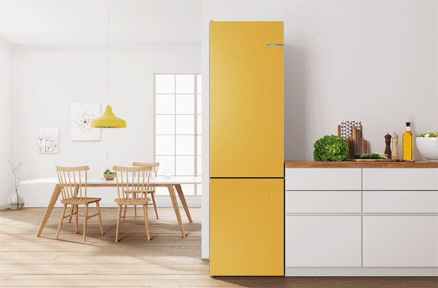 Ce réfrigérateur-congélateur Bosch est personnalisable grâce à un choix multiple de couleurs de portes. Le concept VarioStyle vous offre la possibilité de modifier la couleur de votre réfrigérateur et de changer le design de votre cuisine. Le changement de porte se fait simplement et rapidement grâce à un système de crochets et d'aimants invisibles.