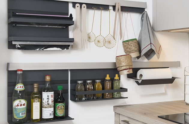 Ustensiles, épices et condiments sont nécessaires à chaque fois que vous cuisinez. Aussi, il est stratégique de les avoir facilement à portée de main et bien visibles pour trouver le bon rapidement. Astuce pratique : les rangements muraux pour placer tous ces indispensables.
