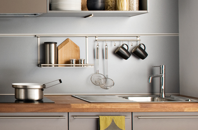 Appelée crédence technique, c'est une barre fixée au mur qui vous permet de suspendre divers accessoires pour ranger vos ustensiles, et même plus. Non seulement elle vous fait gagner de la place dans les placards en vous offrant un espace de rangement supplémentaire, mais elle est en plus très pratique en laissant vos ustensiles à portée de main.