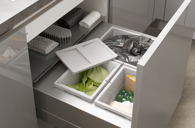 Le recyclage, les ordures ménagères, le compost... On peut vite se retrouver à court d'espace pour trier ses déchets. Il existe pour cela des espaces de tri conçus intelligemment : un bac pour les ordures, un bac pour le recyclage, etc. Encore mieux, ces bacs sont amovibles pour être vidés et nettoyés plus facilement. Le tout est dissimulé dans un grand tiroir ou placard, incognito.
