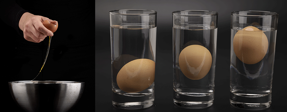 Un moyen simple est de poser l'œuf avec délicatesse dans un récipient d'eau froide. S'il n'est pas très frais, il flottera à la surface. Plus vite il descendra au fond, plus il sera frais. Pour récapituler :