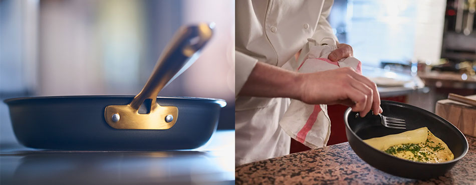 Chaque pièce de la collection Paul Bocuse par Tefal est conçue pour répondre aux attentes des cuisiniers les plus exigeants. La performance de ces ustensiles (une gamme complète de poêles et de casseroles) est assurée par la base épaisse Thermo-Fusion™ de Tefal, qui garantit une diffusion rapide et optimale de la chaleur sur tous les feux, y compris l'induction. Pour une prise en main sûre et confortable, les articles sont dotés de poignées rivetées en acier inoxydable doré.