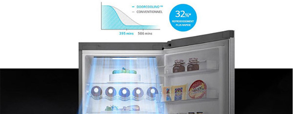 LG a mis au point une nouvelle technologie de conservation appelée Door Cooling. Il s’agit d’un rideau d'air froid au niveau de la porte qui limite la pénétration d'air chaud à l'intérieur. Le tiroir fraîcheur de la marque est baptisé Fresh Balancer.