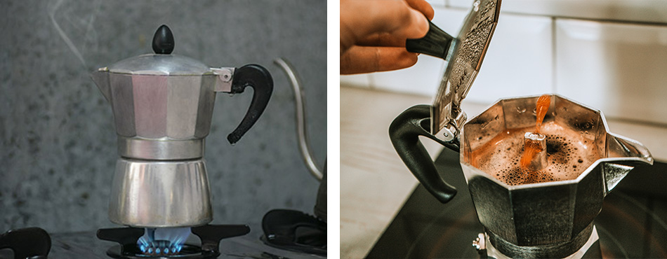 | À savoir : La cafetière italienne et à piston fonctionnent sans électricité. La cafetière italienne se pose sur une plaque chauffante, tandis que celle à piston se remplit directement avec de l'eau chaude. |