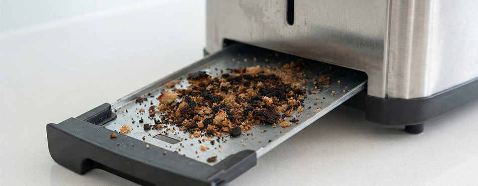 - L'erreur : laisser les miettes s'accumuler au fond de l'appareil ;
