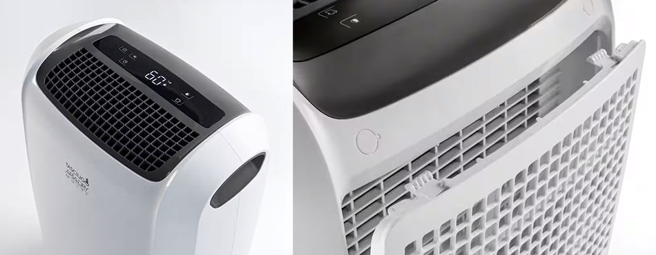 Très apprécié des utilisateurs, le déshumidificateur De'longhi DDSX220 peut éliminer jusqu’à 20 litres d’humidité dans l’air par jour. Et il le fait en éliminant jusqu’à 99,96 % des particules fines, telles que les allergènes et les polluants grâce à son filtrage à double action.