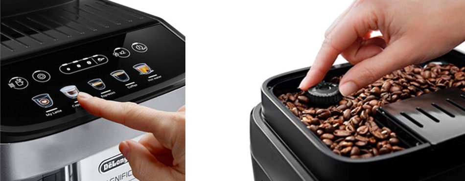 Très facile d’utilisation avec son écran tactile hyper intuitif, elle n’en propose pas moins 5 préparations différentes (Expresso, Café, MyLatte, Cappuccino et Eau chaude) et 13 niveaux de finesse de broyage réglables. Vous pouvez donc personnaliser l’intensité, la longueur en tasse et la température de toutes les boissons disponibles, et ce en toute simplicité.