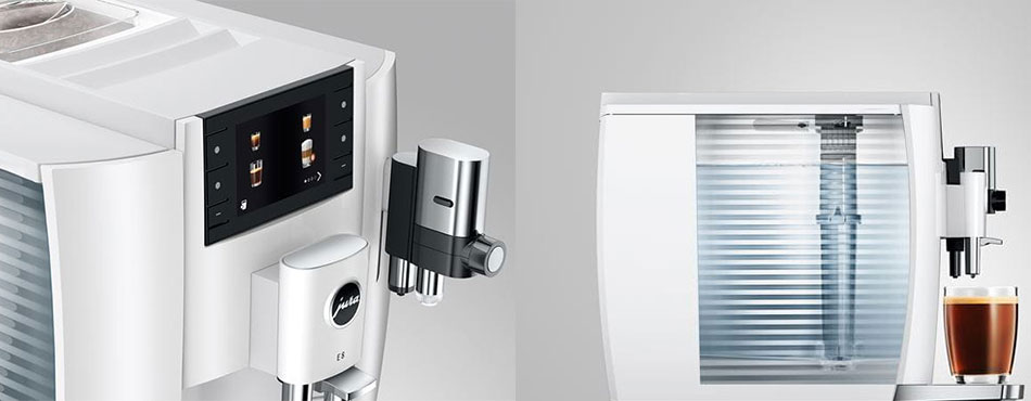 Là où la machine à café Jura E6 proposait 3 niveaux de réglage de la mouture, la Jura E8 en propose 7. L’interface se fait plus grande et plus ergonomique, mixant écran tactile 3,5’’ et 6 touches physiques. On appréciera également le nettoyage One-Touch du système de lait, le contrôle du bac d’égouttage ou encore l’éclairage de tasse, une petite touche luxueuse et très esthétique.