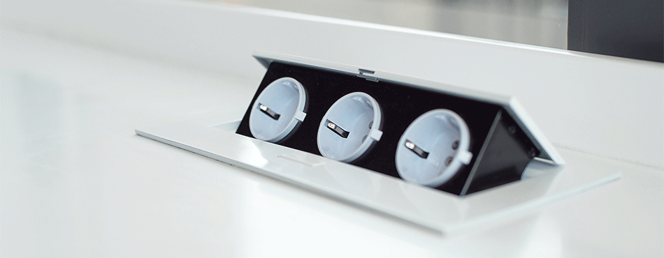 La multiprise escamotable est un peu plus complexe à mettre en place. Cela désigne un système ou la prise peut disparaître. Par exemple, sous un bureau via une trappe. Il existe certaines prises qui sont placées dans des boîtiers plus ou moins designs. Parfois, c’est votre meuble qui va disposer de petits rangements cachés pour votre multiprise : trappes, tiroirs coulissants, plateformes remontables…