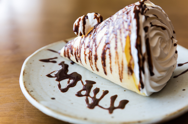On l'appelle aussi la crêpe japonaise. Son dressage est simple : votre crêpe cuite, pliez-la en deux, puis disposez là aussi une garniture généreuse - l'idée étant de donner du volume au cornet. Chantilly, boules de glace, fruits coupés... Laissez libre cours à vos envies. Ne vous reste plus qu'à enrouler la crêpe en partant d'une extrémité pour former un cône.
