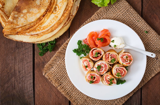 Comme pour un gâteau roulé, ici on remplace la génoise par une crêpe, sur laquelle on étale la garniture, avant d'enrouler le tout sur lui-même. Une fois le boudin formé, on le découpe en petits morceaux de la longueur d'un sushi. Idéal en version salée pour l'apéro, et même en version sucrée pour un goûter buffet.