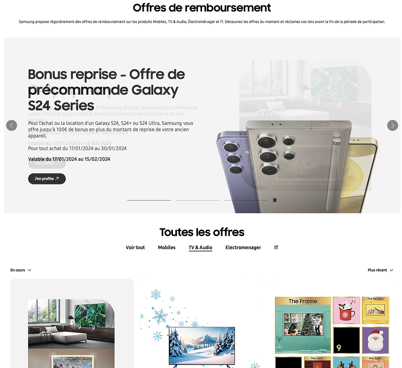 Une offre de remboursement est une offre promotionnelle consistant en un remboursement partiel et différé du montant d'achat d'un produit. Téléviseurs, PC portables, réfrigérateurs, cafetières avec broyeur, smartphones, écouteurs sans fil, four encastrable, etc., de nombreuses catégories de produits font l’objet d’offres de remboursements