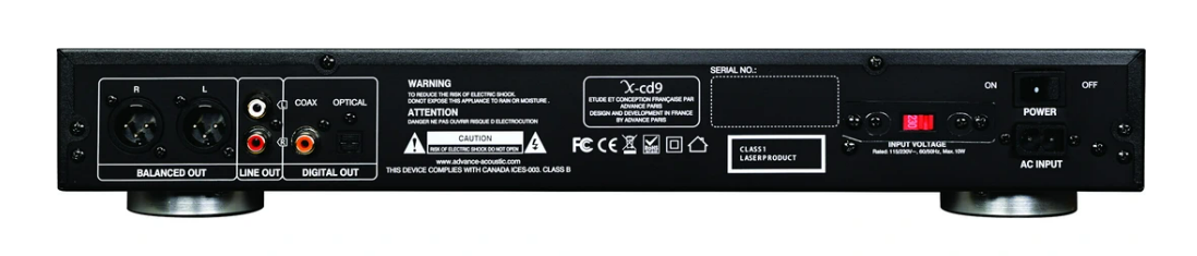 On trouve généralement sur les platines CD une sortie RCA (rouge et blanche), qui permet d’alimenter directement un amplificateur. Mais certains modèles, comme le modèle Advance Paris X-CD9, disposent de sorties dites symétriques, souvent plus qualitatives et qu’on retrouve en général sur des amplificateurs de gamme supérieure. La présence d’une sortie optique ou coaxiale permettra plus tard de faire évoluer votre système en connectant votre platine CD à un DAC externe de meilleure qualité. On peut ainsi améliorer le son, parfois de façon très sensible.