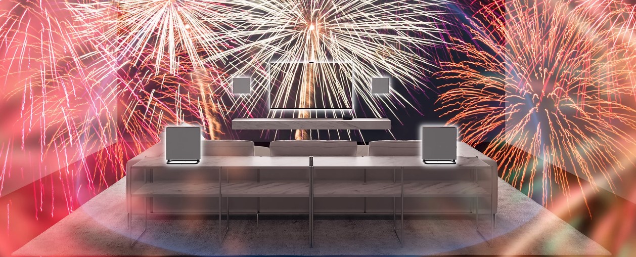 Sony nous présente ici un système particulier, composé de 4 enceintes et muni de 16 haut-parleurs, le tout sans fil. Ce système Sony Bravia Theatre Quad vous permettra de bénéficier d’une immersion optimale sans avoir besoin de réagencer votre intérieur et de tirer des fils disgracieux pour profiter de vos programmes Dolby Atmos en tout quiétude. Vous pourrez lui associer un caisson de basse sans fil pour une immersion encore plus profonde.