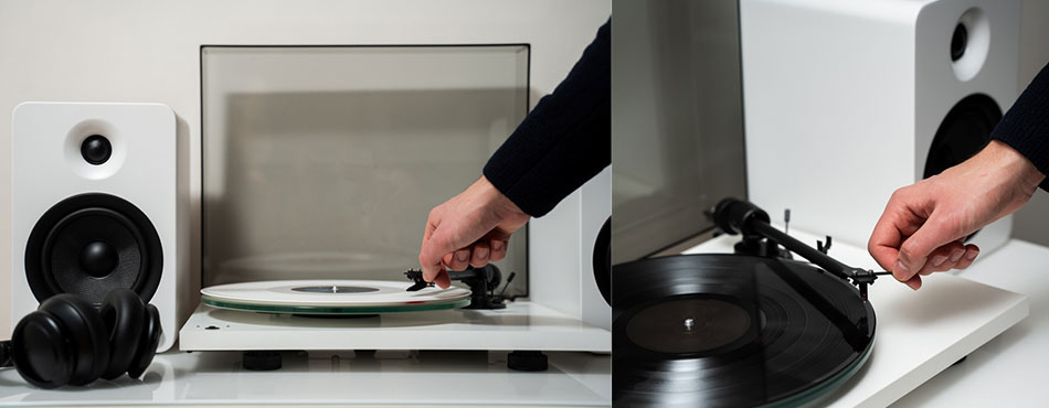 Les amateurs avertis et les DJs s’en passent volontiers et positionnent le bras de lecture manuellement. Mais si vous êtes un utilisateur occasionnel ou que vous craignez un faux-mouvement, utilisez de préférence le levier pour positionner la cellule au niveau souhaité sur le disque, puis faites-le redescendre doucement. Cela diminue le risque d’abimer le disque et/ou le diamant.