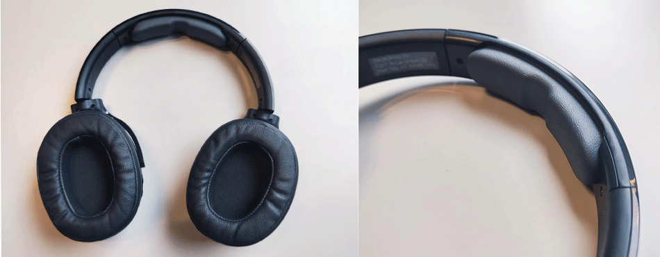 La mousse arbore une texture plastifiée tout à fait correcte au toucher. Le plastique des oreillettes est à peu près le même que celui du ANC2, doux au toucher, mat et élégant. Les mousses supra auriculaires sont très épaisses et englobent bien l'oreille. Rien à redire de ce côté. Autre élément distinctif : les deux câbles qui partent des enceintes pour aller dans l'arceau. Le casque est également "lourd" dans le bon sens du terme, et ne fait pas du tout jouet ou plastique. Il respire lui aussi la qualité. Autre petite différence : les boutons dont le design change. Le casque arbore ici un bouton plus(+) et moins(-) séparés par un bouton central.