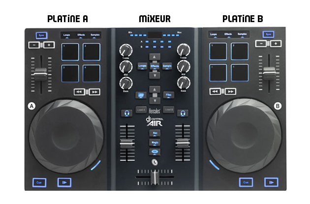 On retrouve les mêmes boutons sur la platine A et la platine B. Au final, il y a donc peu de boutons à apprendre !