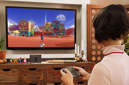 Vous avez la possibilité de synchroniser plusieurs consoles pour s'affronter ou coopérer ! Comme son nom l'indique, la Nintendo Switch est autant une console de jeu portable qu'une console de salon. Il vous suffira de déposer la console dans son support (le Dock) pour commencer tranquillement votre partie sur votre téléviseur.
