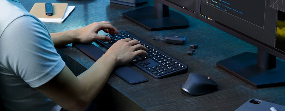 Plus besoin de multiplier les périphériques, un seul combo clavier/souris suffit pour les deux partenaires s'ils alternent sur le même poste. Parmi les produits compatibles, on peut citer la toute récente Logitech MX Master 4, la souris ergonomique verticale Logitech Lift ou encore la non moins excellente gamme de claviers Logitech MX Keys.