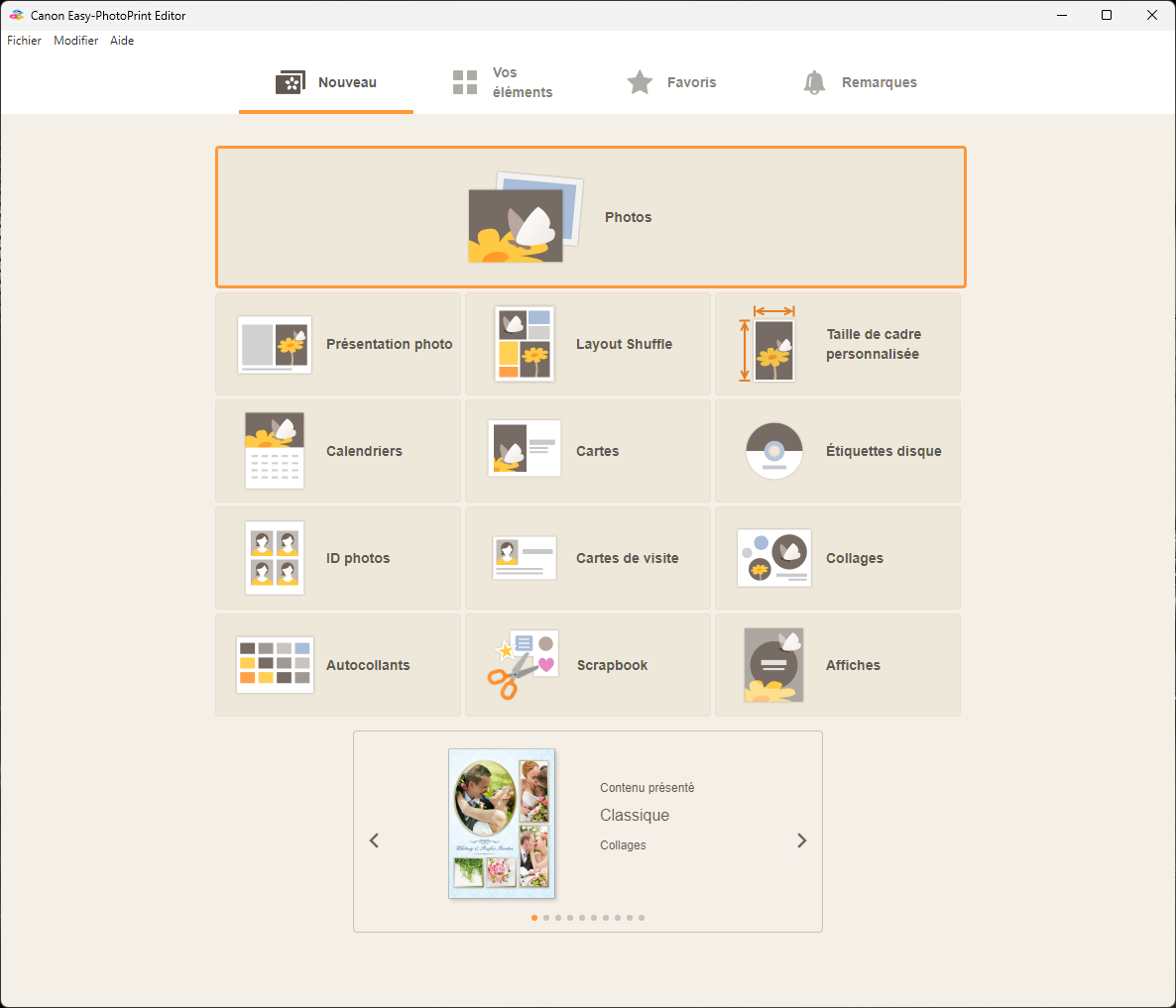 Sur PC le logiciel Canon Easy-PhotoPrint Editor regorge de possibilités de type d’impression, vous laissant toute latitude pour exprimer votre créativité. Cela vaut pour la simple impression d’une photo, mais aussi pour les calendriers, collages, cartes de visites, photos d’identités ou affiches (en installant Easy-Layout Editor). Le choix est vaste et les options variées. Le tout est très intuitif à l’usage.