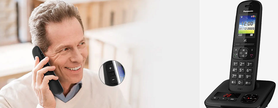 Doté de touches larges, le Panasonic est ergonomique et d’une utilisation très simple. Des touches situées sur la tranche du combiné vous permettent d’accéder à un volume sonore élevé, pratique si vous souffrez de problèmes d’audition ou si votre interlocuteur vous appelle depuis un environnement bruyant.