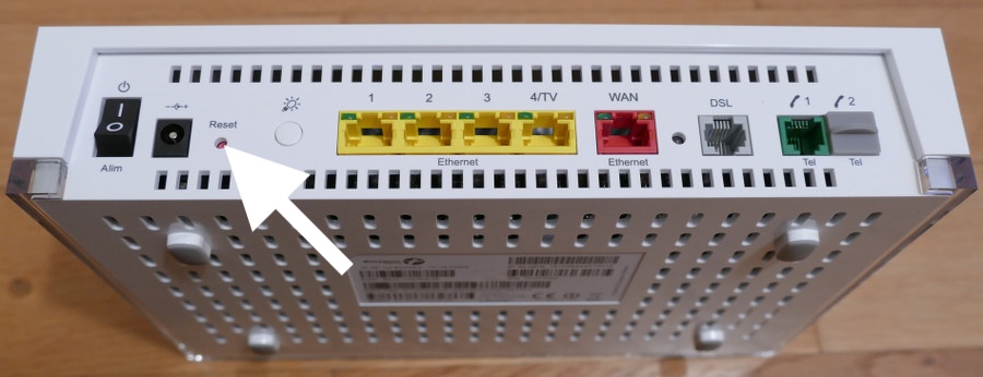 Si le redémarrage de la box ne résout pas le problème, vous devrez peut-être la reconfigurer aux paramètres d’usine. Pour cela, la plupart des box possèdent un bouton "Reset" qu’il suffit de maintenir appuyé quelques secondes. Sur certaines box il s'agit d'un petit orifice sur lequel il faut appuyer à l’aide d’un trombone.