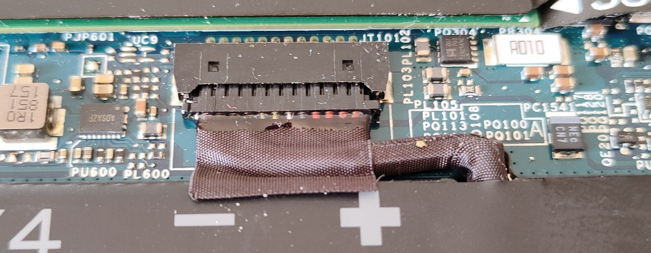 Elle consiste à déconnecter la nappe (voire visuel ci-dessous) et on retire la batterie d'origine. On place ensuite délicatement la batterie de remplacement en s'assurant que les trous de vis correspondent bien sur les deux parties (batterie et carte mère). Il ne reste plus qu'à revisser, en évitant là encore de forcer. On branche ensuite - toujours avec délicatesse - la nappe de connexion de la batterie au connecteur dédié sur la carte mère.