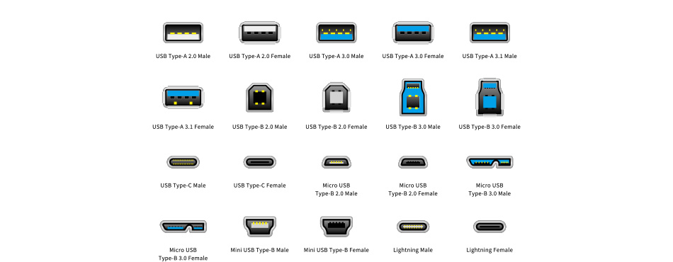 L'USB est de loin l'interface la plus répandue pour les disques durs externes. Il existe différentes versions, chacune offrant des vitesses de transfert croissantes : allant de 480 Mbps (mégabits par seconde) pour l’USB 2 jusqu’à 20 Gbps ou 40 Gbps pour USB 4 (Gen 2x2 et Gen 3x2).