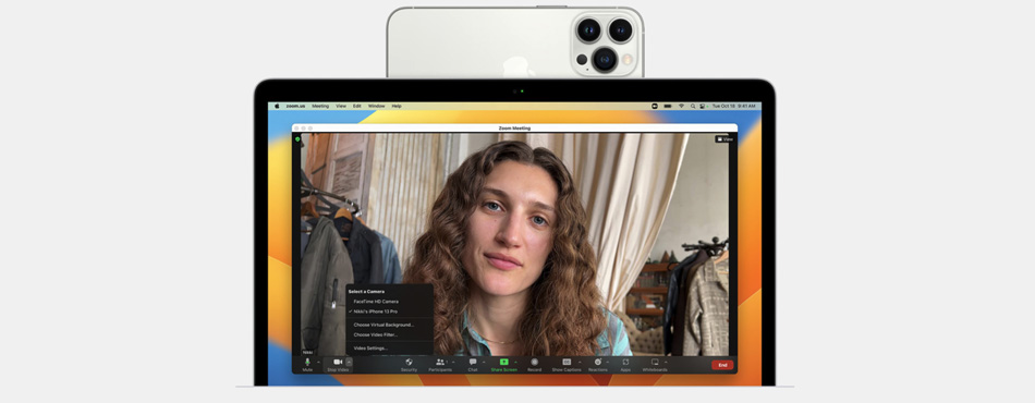 - Continuité de l’appareil photo : cela vous permet d’utiliser votre iPhone comme webcam pour votre Mac. Vous bénéficierez d’une qualité optimale pour vos appels FaceTime ou vos réunions Zoom par exemple ;
