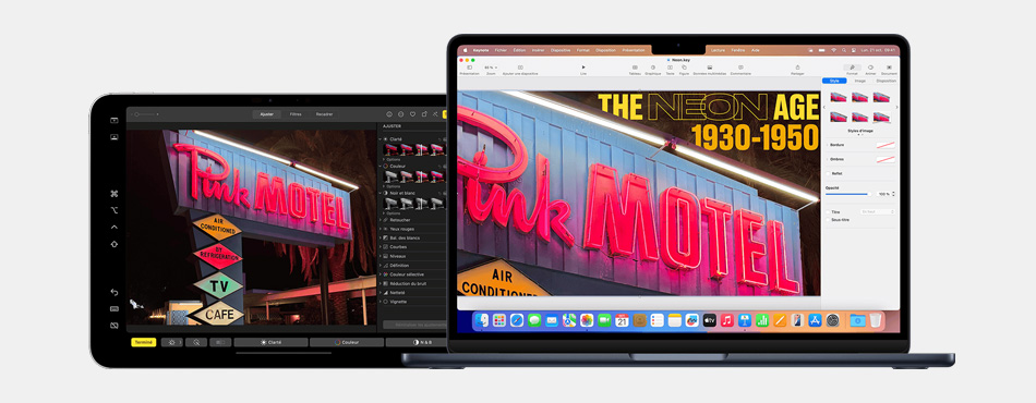 - Commande universelle : avec MacOs et iPadOS, il est possible d’utiliser une seule souris et un seul clavier pour contrôler simultanément Mac et iPad, permettant de glisser-déposer du contenu d’un écran à l’autre sans interruption, ce qui booste la productivité ;
