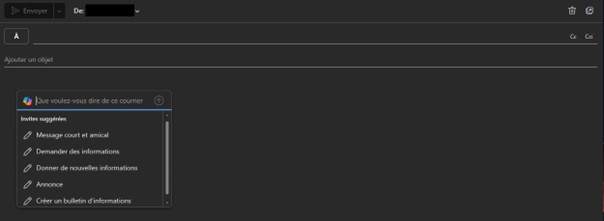 Dans Outlook la possibilité de créer, de résumer ou de répondre à mail.