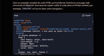 **Aide au codage** 💻 : Besoin d’écrire ou de déboguer du code ? Copilot peut générer du code dans plusieurs langages et vous aider à résoudre des problèmes techniques.