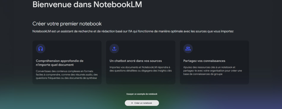 Imaginez un carnet de notes numérique dans lequel vous pouvez déposer tous vos documents : des fichiers PDF, des liens vers des pages web, des transcription de vidéos Youtube et même du simple texte que vous copiez-collez. Maintenant, imaginez que ce carnet est doté d'un assistant personnel capable de lire et de comprendre absolument tout ce que vous y mettez. C'est ça, NotebookLM !