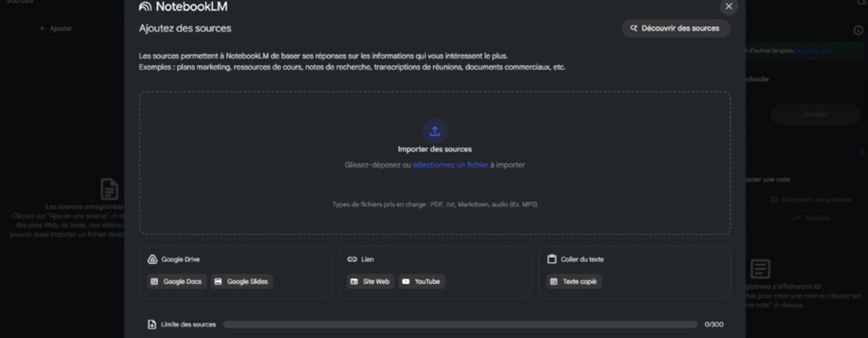 Vous avez déjà importé des tonnes de documents dans NotebookLM, mais ce n'est pas tout ! Saviez-vous que vous pouviez aussi effectuer des recherches directement sur le web pour étoffer vos sources ? C'est super simple et c'est une excellente façon d'ajouter encore plus d'infos à votre carnet.