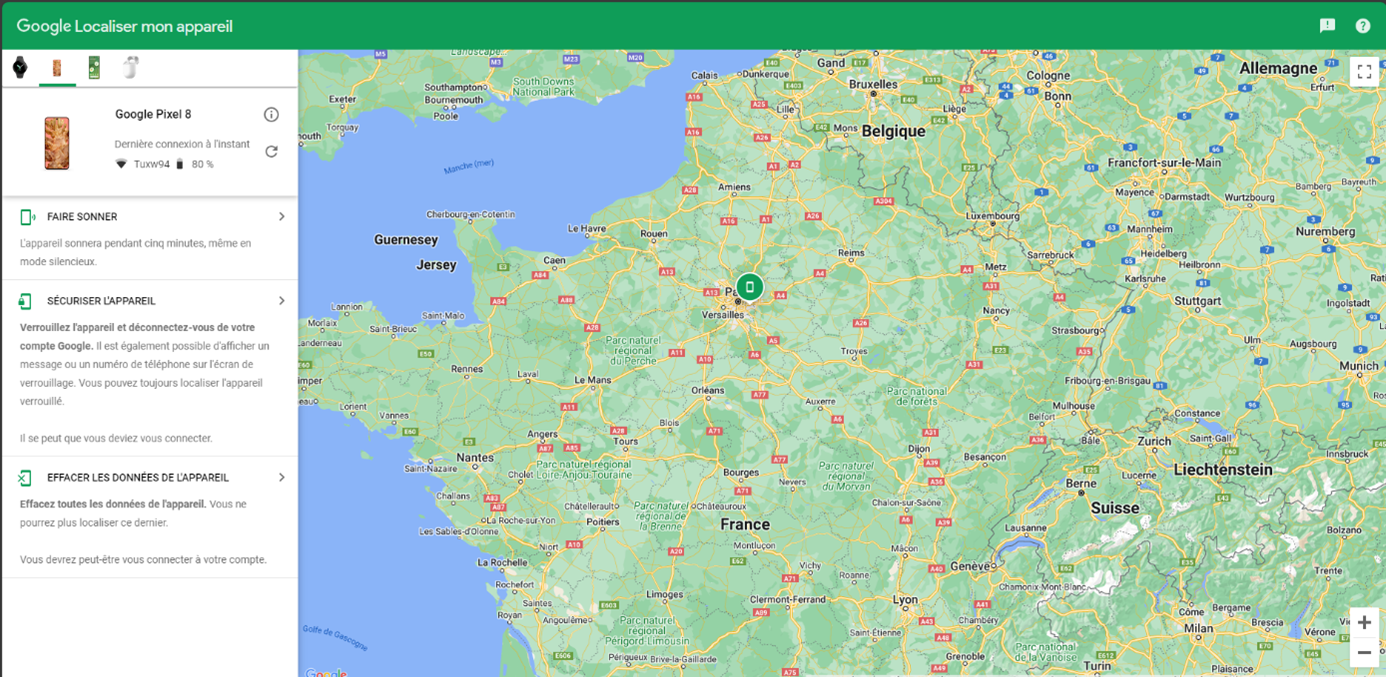 Méthode 1 : utilisez le service "Localiser mon appareil" de Google.