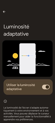 Commencez donc par régler sa luminosité dans vos paramètres. Car plus il est grand, plus il consomme d’énergie ; optez pour le paramétrage de "Luminosité Adaptive" si celui-ci est présent dans vos paramètres, et pour un thème sombre qui est beaucoup moins vorace en énergie.