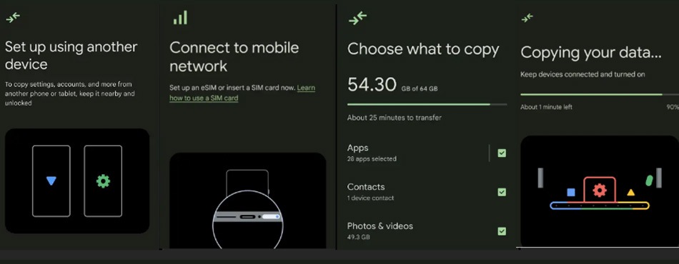 Google a bien fait les choses pour que vous restiez chez eux. Sur les Pixel, il suffit de scanner un QR code pour effectuer le transfert des données.