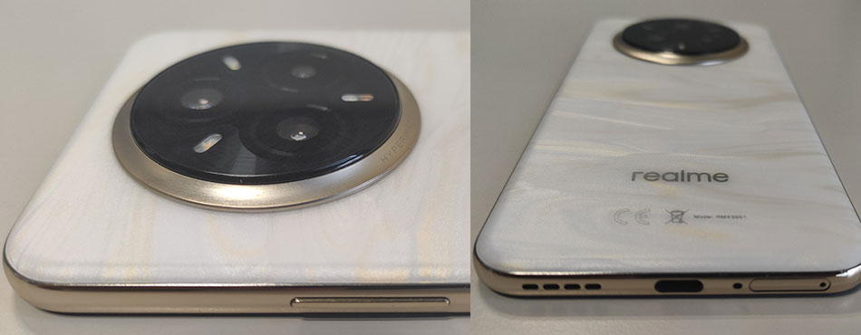 Le style unique du Realme 14 Pro+ est rehaussé par ses tranches chromées (certes en plastique, mais plutôt qualitatif) et par son écran aux bordures ultra fines. L’effet waouh est garanti ! La prise en main est bonne, même si la coque nacrée est un peu glissante.