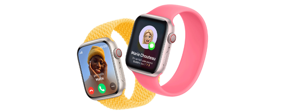 Si vous cherchez une montre connectée Apple polyvalente, de bonne qualité et qui puisse vous accompagner partout, l’Apple Watch Série 9 est la candidate idéale ! 60 % plus performante que la Série 8, elle est encore plus rapide ! Avec un écran deux fois plus lumineux que la Série 8 et qui peut monter jusqu’à 2000 nits, vous verrez toujours ce qui se passe. Mais l’inverse est vrai aussi : une notification importante au cinéma ? La Série 9 est capable de descendre jusqu’à 1 nit de luminosité seulement pour ne pas vous déranger vous et les autres !