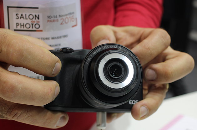 Si le stand de Canon faisait la part belle au modèle hybride EOS M5, nous avons été attirés par un objectif hors du commun : l'objectif à focale fixe EF-M 28 mm f/3.
